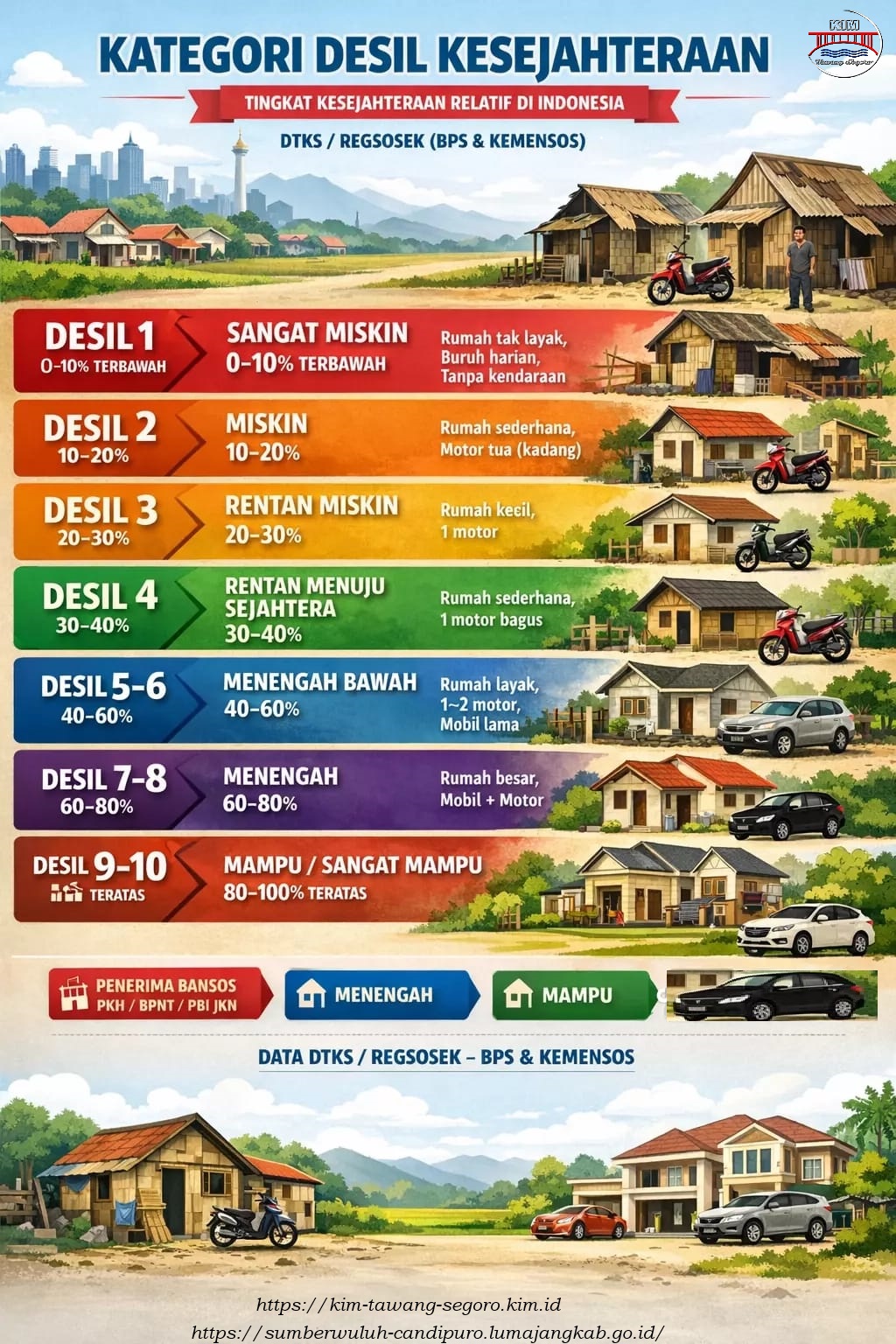 SUMBERWULUH – Pemerintah terus berupaya menyempurnakan mekanisme penyaluran bantuan sosial (bansos) agar lebih objektif dan tepat sasaran. Saat ini, acuan utama yang digunakan adalah sistem Desil, sebuah klasifikasi tingkat kesejahteraan masyarakat yang terintegrasi dalam Data Terpadu Kesejahteraan Sosial (DTKS).