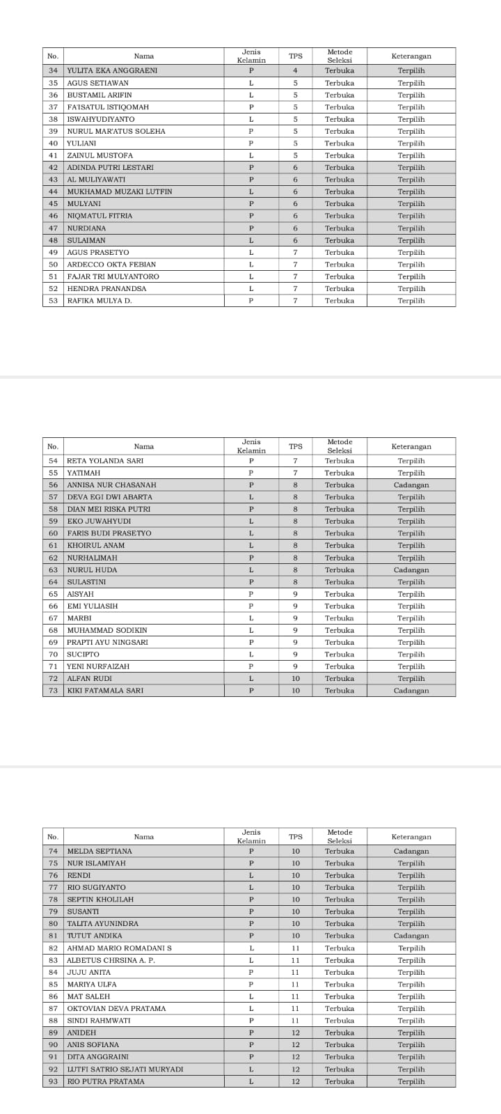 Pengumuman Hasil Seleksi Calon Anggota KPPS Untuk Pemilu 2024 Desa Sumberwuluh Pada Hari Selasa, 29 Desember 2023, bertempat di Kantor Desa Sumberwuluh, Kecamatan Candipuro, ...